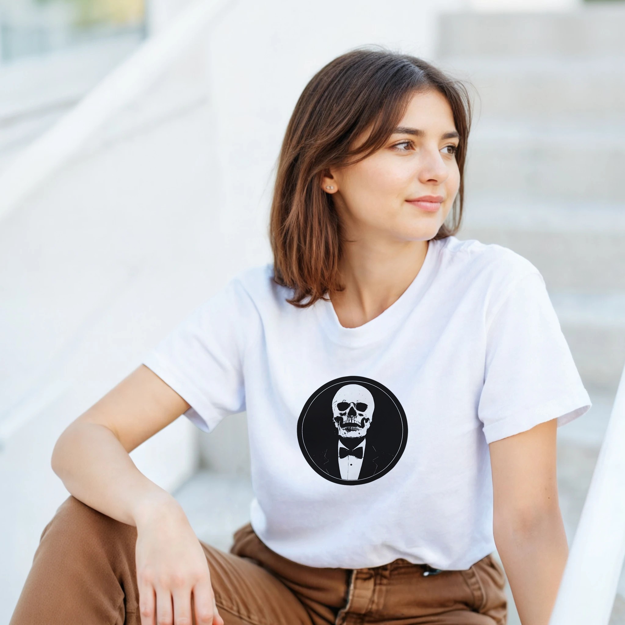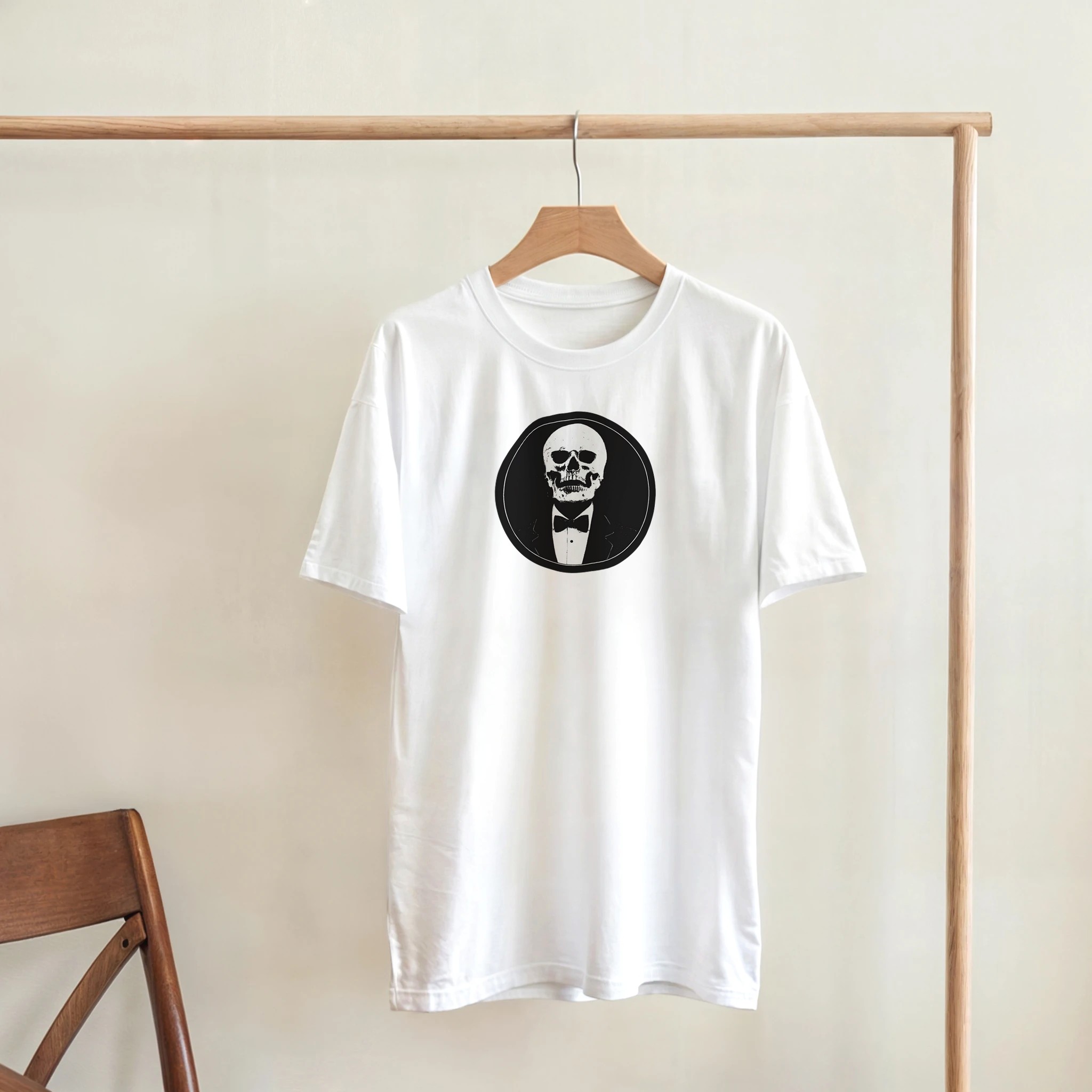Embrace the dark elegance with our Elegant Gothic T-Shirt, designed for those who appreciate the beauty of contrast. Featuring a striking black and white palette, this shirt effortlessly blends formal sophistication with a macabre twist, making it a must-have for any gothic art enthusiast.