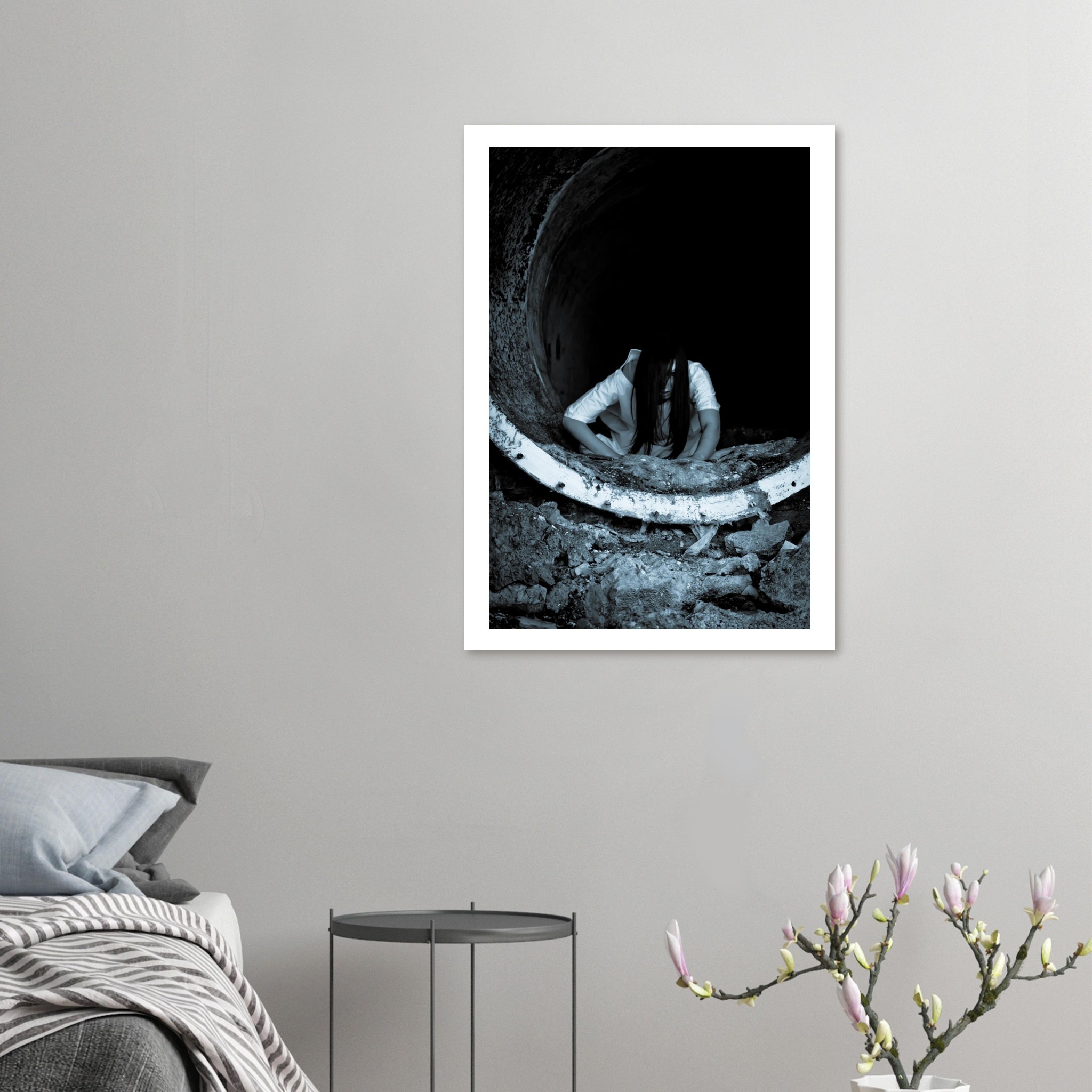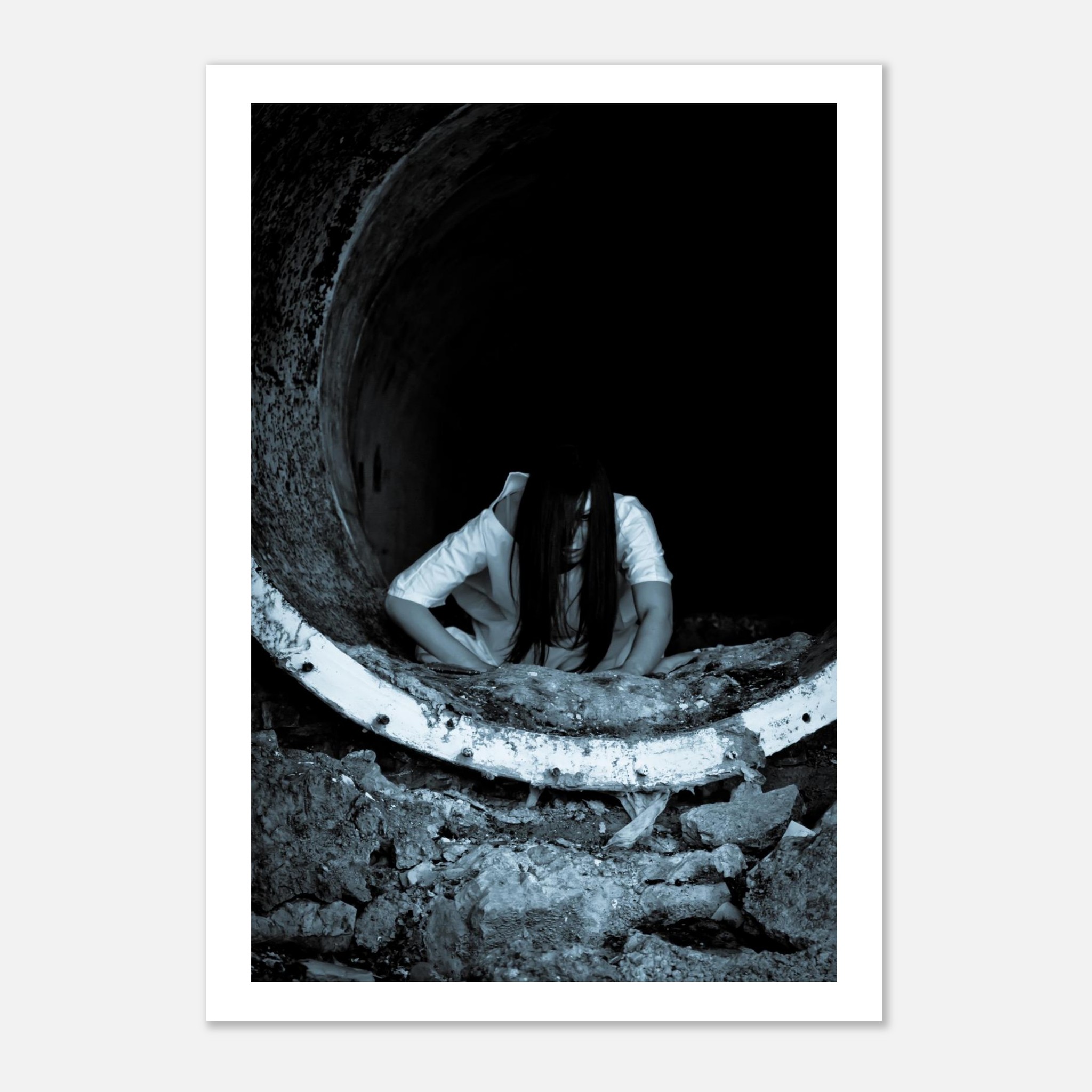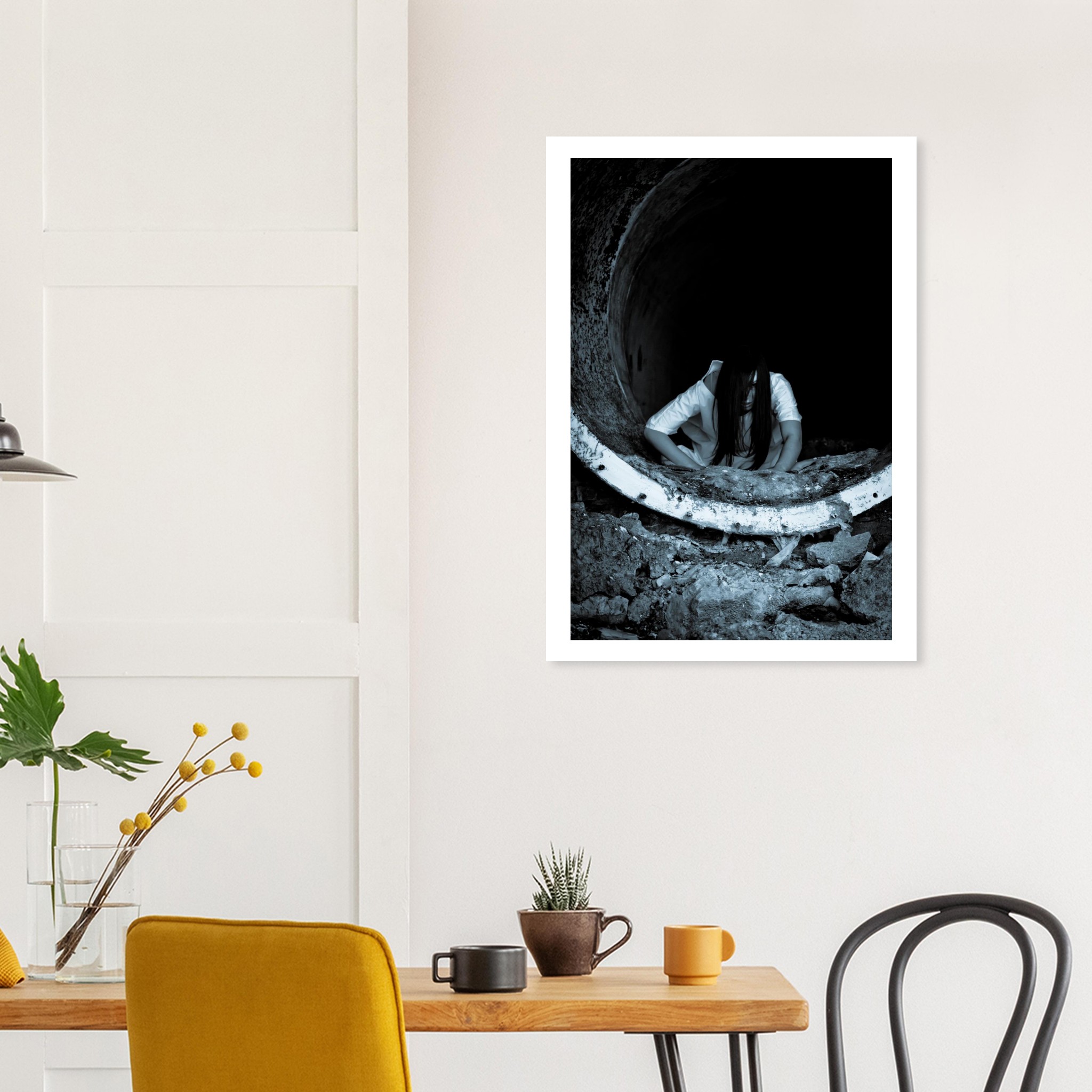 Embrace the eerie atmosphere with our Horror Poster featuring a terrifying image of a woman crawling through a dark tunnel. This haunting design is perfect for adding a frightful touch to your home decor, whether it’s for Halloween, a haunted house, or your horror-themed room.